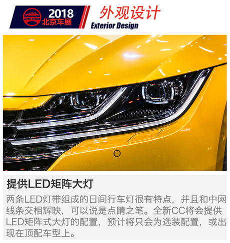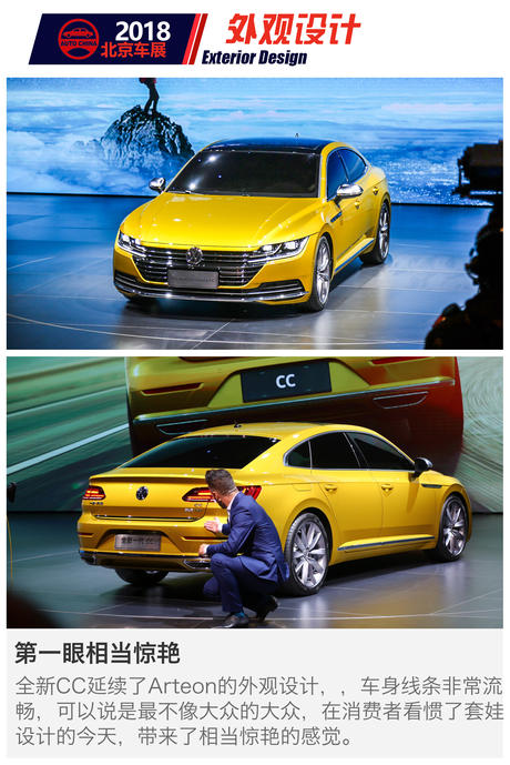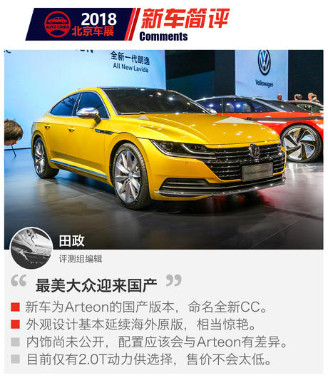 【搜狐汽车2018北京车展】4月23日,在北京车展前夕的大众之夜上,大众发布了Arteon的国产版本——全新CC。最美大众终于迎来了国产,整体上延续了海外原汁原味的设计。全新CC由一汽大众负责生产销售,预计于今年8月正式上市销售。下面就请跟随搜狐汽车的视角,来近距离接触一下这辆最美大众。