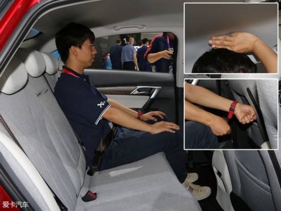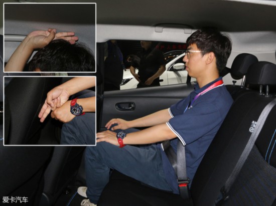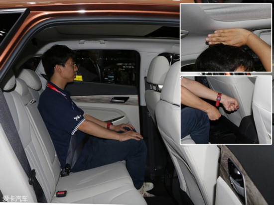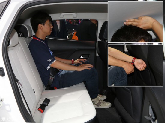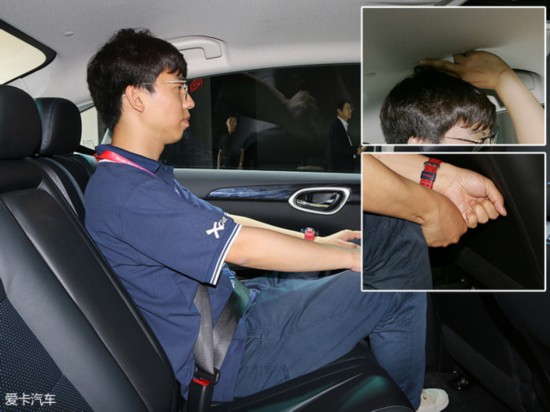 保持前排位置不变,体验者坐进后排,头部空间仍为四指,腿部空间两拳有余。