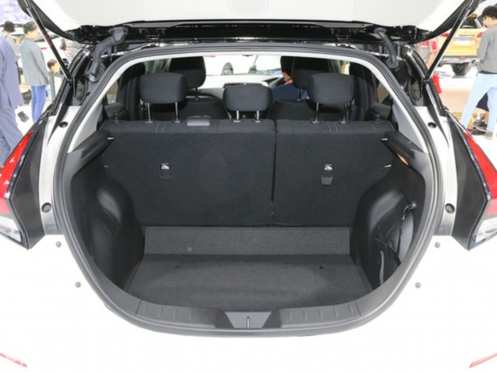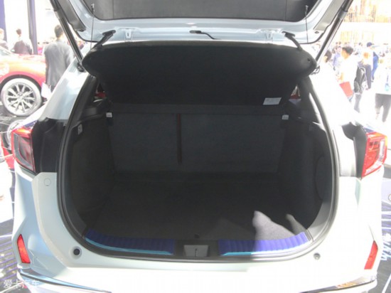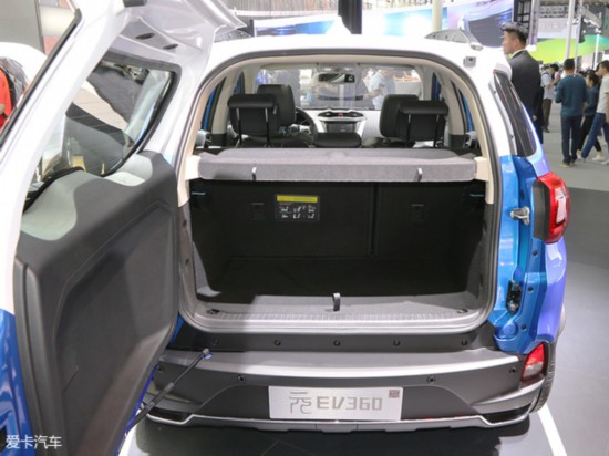 元EV360的行李厢门为侧向开启,轻轻按压行李厢门把手上的按键行李厢门便会自动弹开,开门按键很有质感。行李厢内部较为规整,可放倒的后排座椅可以进一步扩展其并不宽裕的空间。