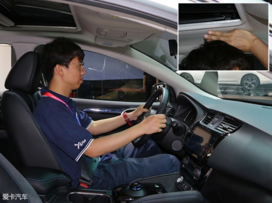 体验者身高175cm,坐进前排将座椅调至最低后,头部还有一拳的空间剩余。