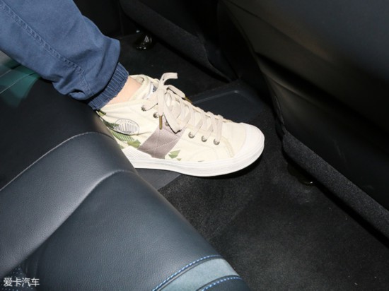 体验者坐进后排后,头部空间三指,腿部空间一拳两指。这样的空间表现达到了同级主流车型的水准。