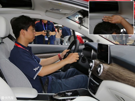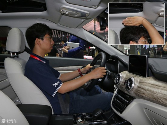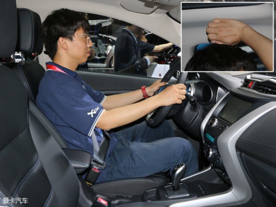 体验者身高175cm,由于展车未通电,所以不能调节座椅高度,图示仅供参考。头部空间剩余三指。