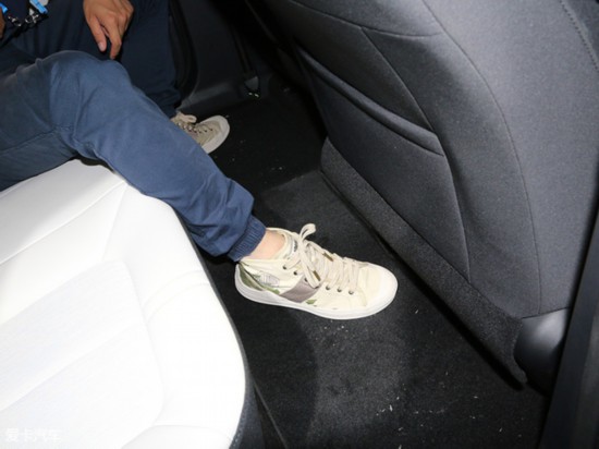 体验者坐进后排,腿部空间两圈有余,头部空间依旧为三指。可见EU5的后排腿部空间还是非常宽敞的。