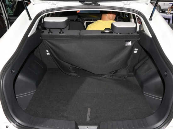 欧拉iQ的行李厢门采用掀背式设计,开口巨大,并且内部非常平整,将盖板揭开后,下方还有一个隐藏式储物空间。装载空间巨大且实用。
