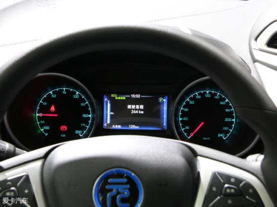 炮筒式机械仪表+液晶屏的设计比较传统,对于一辆纯电动车来讲这样的设计不免有些落伍了。