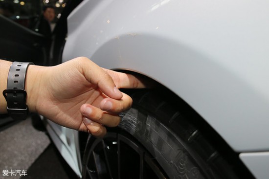 轮胎与翼子板之间仅剩余一指,低趴的风格也让它能更好的发挥自身的性能优势。