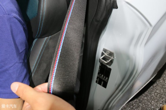 安全带上红蓝线条的标识代表了它作为“M”家族成员的身份象征。