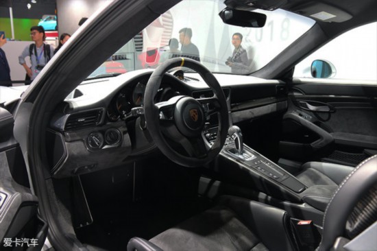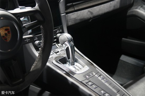 保时捷911 GT3RS的内饰采用了大面积的Alcantara材质,中控饰板、门板装饰条都采用了碳纤维材质。