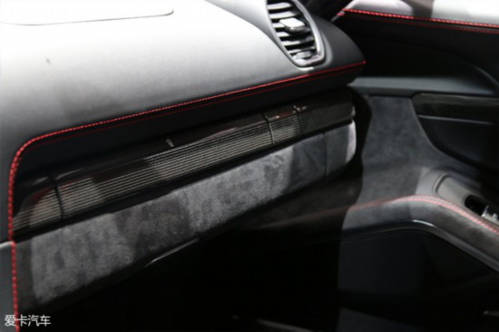内饰部分相比普通版的用料更加厚道,中控台顶部有皮质包裹,方向盘上还有碳纤维材质和Alcantara材质包裹。
