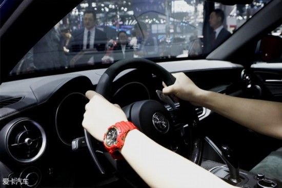 方向盘采用皮革、碳纤维以及Alcantara材质打造而成,并且在三九点处采用了人机工程学设计,让整个方向盘握起来非常具有驾驶欲。