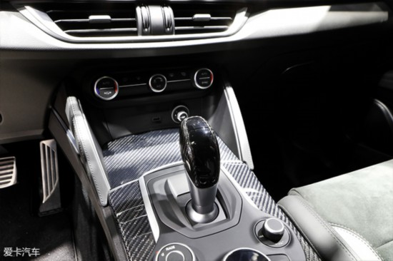 中控台采用真皮、碳纤维、Alcantara三种材质组合而成,搭配红色缝线,为本就十分运动的内饰氛围添砖加瓦。