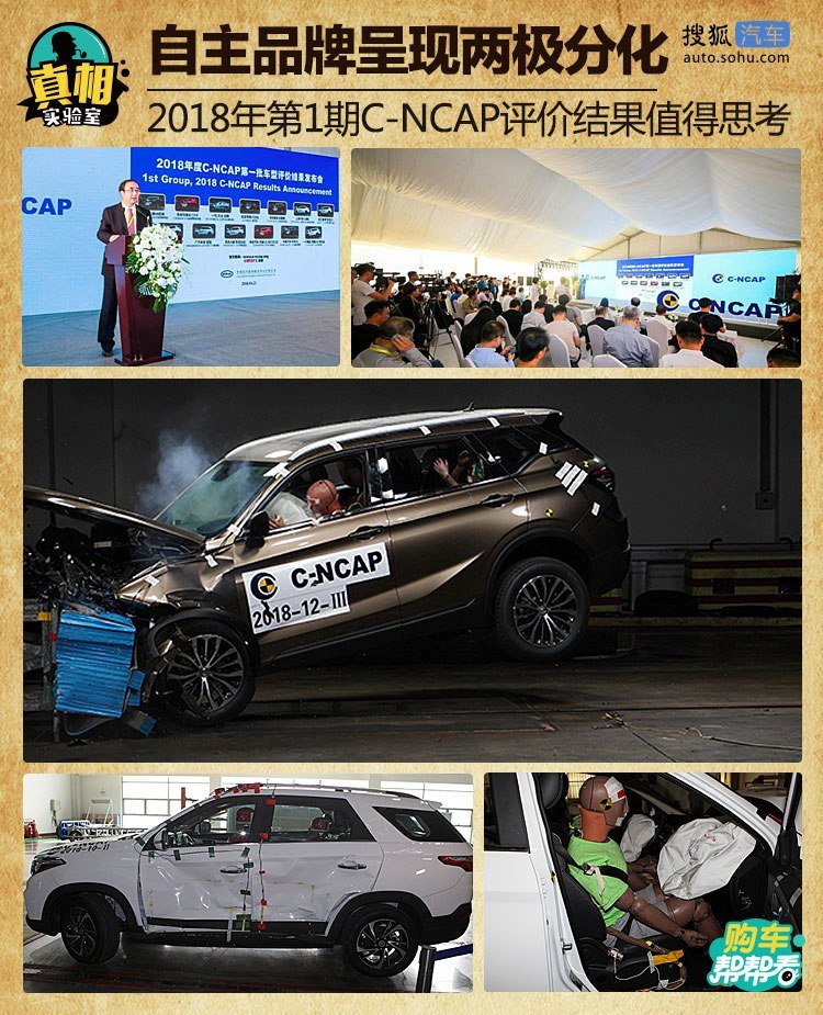 【搜狐汽车 真相实验室】(文:石嵩) 第十五届北京国际车展的热度尚未消退,汽车安全这个老生常谈的话题再一次引起了人们的关注。就在此次北京车展开幕前夕,中国汽车技术研究中心对外发布了2018年度第1期C-NCAP(中国新车评价规程)车型评价结果。本期C-NCAP车型评价依据的依旧是2015年7月1日开始施行至今的2015版C-NCAP评价标准,共对13个车型进行了评价试验。在今天的文章中,我们就向大家详细解说这13个车型的碰撞试验评价结果。
