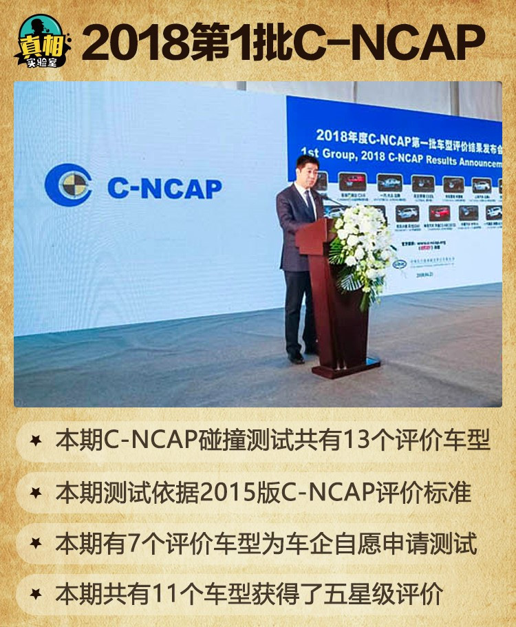 需要说明的是,以上13个用于进行碰撞试验的具体车型,都是按照销量最大的配置选取,并从汽车经销商处购买而来。2018年C-NCAP第1期车辆碰撞试验评价工作于今年1月2日开始,直到今年4月19日正式完成。