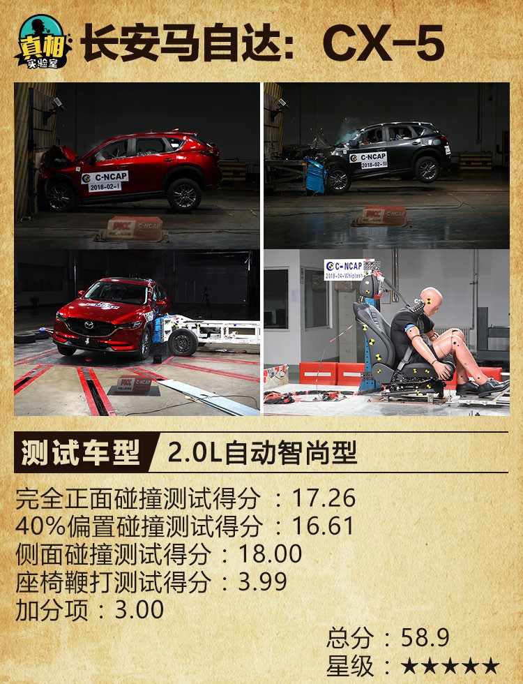 不难看出,在2018年C-NCAP第1期车型碰撞试验评价中,SUV车型仍然占据了绝对多的比例,这和目前中国汽车消费市场中SUV车型依旧唱主角有着很大的关系。值得欣慰的是,本期参与测试的绝大部分车型都有着较好的表现,尤其是对于发生侧面碰撞或翻滚事故时车内乘员的保护措施进行了明显的加强。