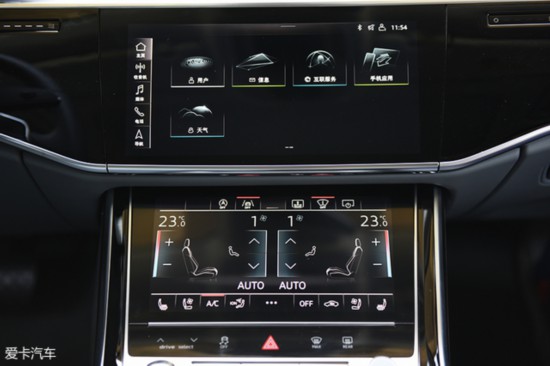 奥迪A8的中控采用了上下双屏设计,这样的设计风格会在之后的奥迪新车中得到延续,虽然是触控操作,但是自带的声音反馈,让你感觉更像是实体按键操控。