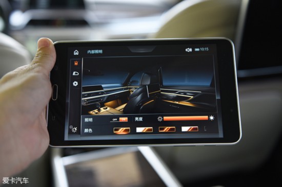 后排的平板控制系统功能非常丰富,可以对照明、空调、副驾驶座椅等进行调节。