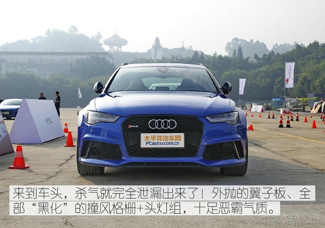走到车头,这张面孔可谓咄咄逼人:大面积的熏黑中网搭配悬浮设计的四环LOGO和RS6标识,还有熏黑后的“迪”式矩阵LED大灯组,更有下方的小包围,怎么看怎么干练。
