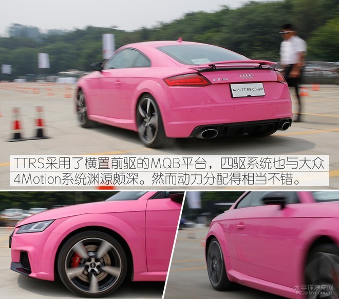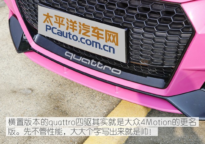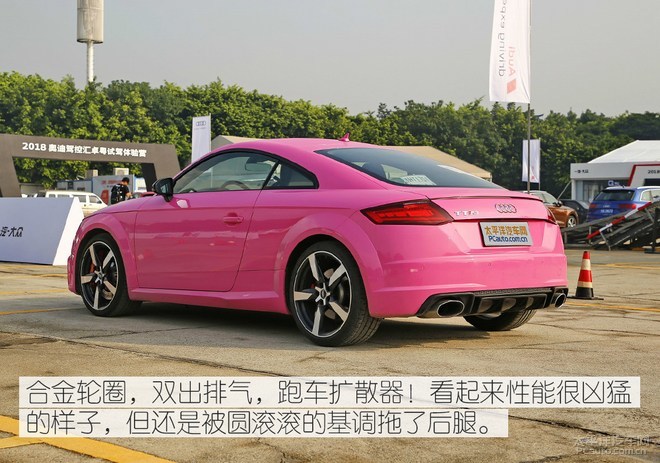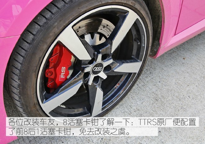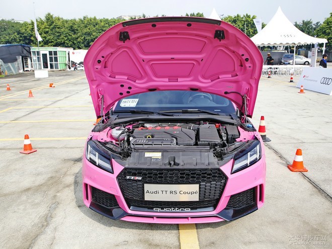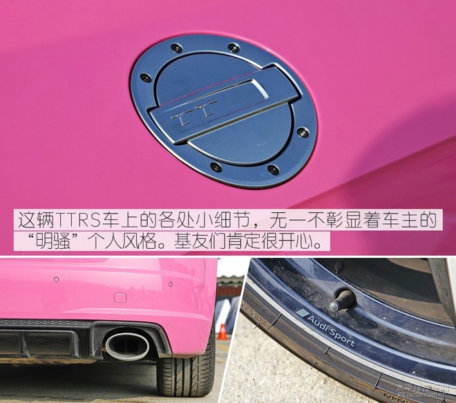个性化,绝对是TT车系字典里经常出现的词语,这辆TT RS也不例外:首先这骚粉色已经“男女通吃”,赢得不少注目礼了;而随处可见的个性化标识更能车主拥有更多的个性满足感,无形中也为马力数“加了10PS”(误)。