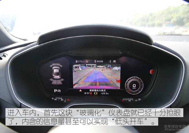 受益于MQB平台的应用,奥迪掀起的MMI虚拟座舱之“风”吹到了TT RS这台硬核小炮身上,其提供环视影像、导航、多媒体系统以及常规样式的仪表阵列可选。