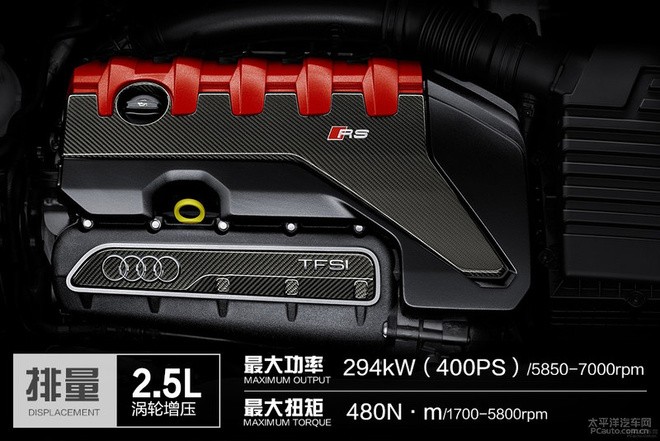 2.5T五缸发动机绝对是个尤物,特别是在这个电动车大潮袭来的大背景下。这款车坛中的“老炮儿”引擎,斩获了多个国际引擎大奖不说,还能兼顾占用空间少、动力输出暴力的优势。294kW(400PS)、480N·m的五缸机了解一下。