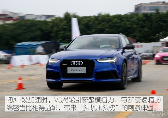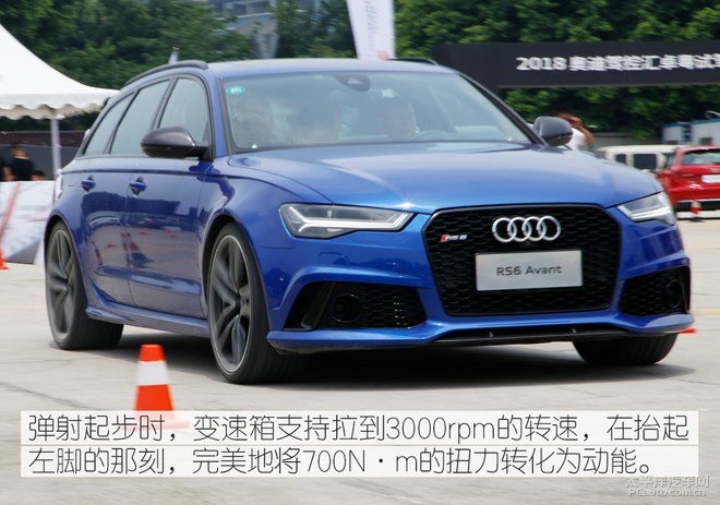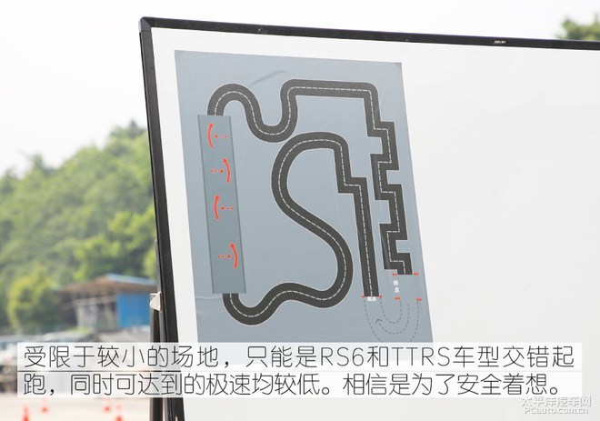 好了,小编溜上了RS6:先调好坐姿+方向盘位置+后视镜位置,戴好安全带,将档杆打到S档,再将ESP关掉,左右脚同时踩刹车和油门踏板……当转速憋到了3000rpm之时,猛地抬起左脚,在quattro四驱+各种电子系统的辅助下,4个轮胎的打滑得到了很好的抑制,一次完美的弹射起步就这么完成了。