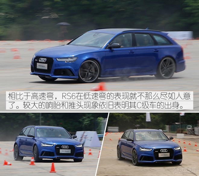 出弯后,迅猛的动力重新地“涌”了出来,将车辆推去了高速弯:在高速弯时,RS6的底盘展现出了较高的素质,给人的感觉就是在以更慢的速度驾驶这一辆标准版的A6车型,绝对是一辆让你不自觉就开到超速的车型。
