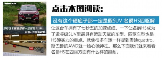 一款SUV的加速性能够到达到7.5秒,绝对不是碰运气能够得到的。这体现的是一款车的综合实力,除了在发动机输出的动力,变速箱的配合要达到一流水准之外。轮胎的抓地力也是重要一环。当然这台名爵HS还配备了四驱系统,高效的发挥所有的动力也不是什么难事了。