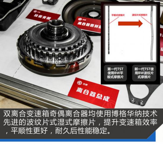 双离合变速箱最重要的难点不在齿轮箱,齿轮箱的结构其实与手动变速箱原理相同,基本结构对于润滑的要求并不苛刻。而难点则在离合器部分,它对于一台双离合变速箱而言几乎意味着一切。此次对于离合器的优化,能让变速箱的平顺性和响应性有一个不错的提高。另外在软件部分也有相应的优化。提升了整体效能。