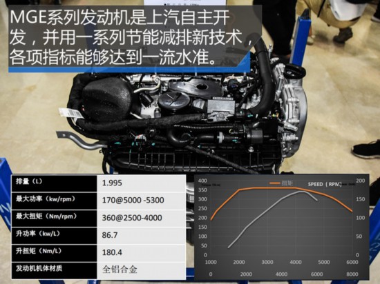 MGE系列的发动机则更多的是由上汽集团自主进行设计开发,这台发动机使用了时下的一些主流技术,例如我们耳熟能详的缸内直喷、低惯量涡轮增压、进排气双可变正时技术、可变排量机油泵、航天级全铝材质等等。