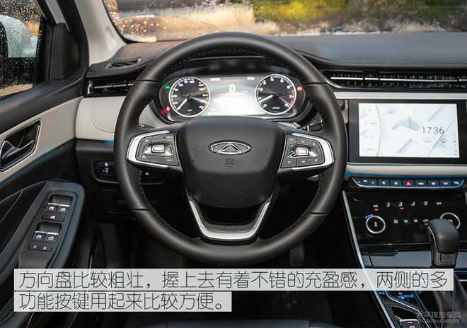 奇瑞对消费者的需求把握比较准确,这个级别消费者要极致运动感的还是少数,方向盘调校比较偏向于舒适方向,转动起来比较轻松,在驾驶过程中不会抢戏。