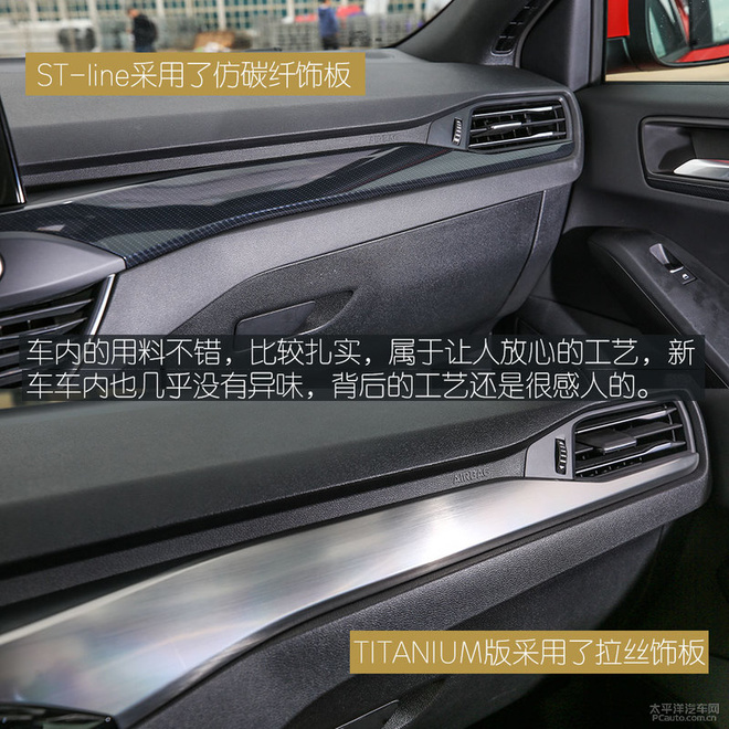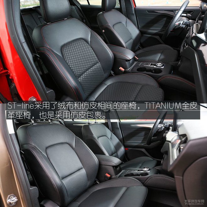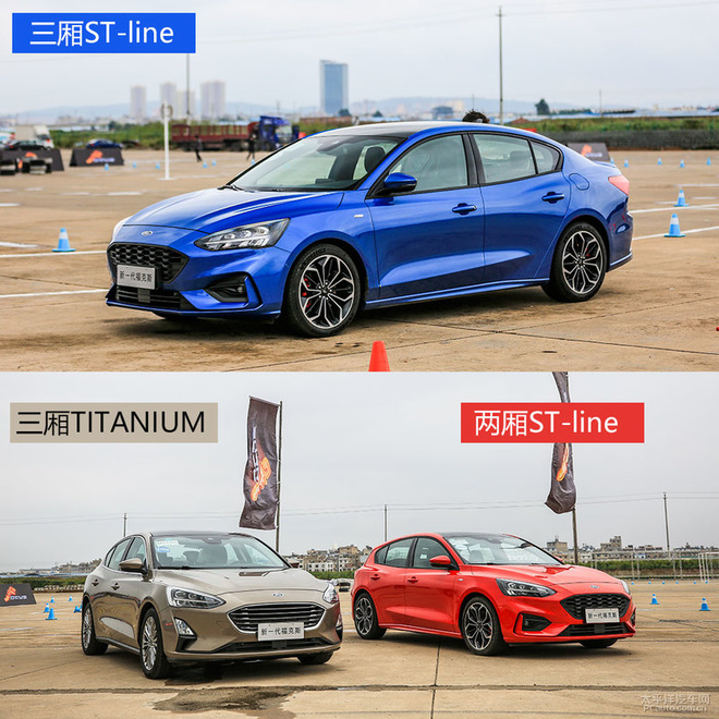 这次我们见到的试驾车有三款,两厢ST-line、三厢ST-line和三厢TITANIUM。基本都算是高配车型,ST-line和TITANIUM未来的售价应该处于同一级别,只不过ST-line把成本用在了运动套件上,而TITANIUM则突出舒适性配置。