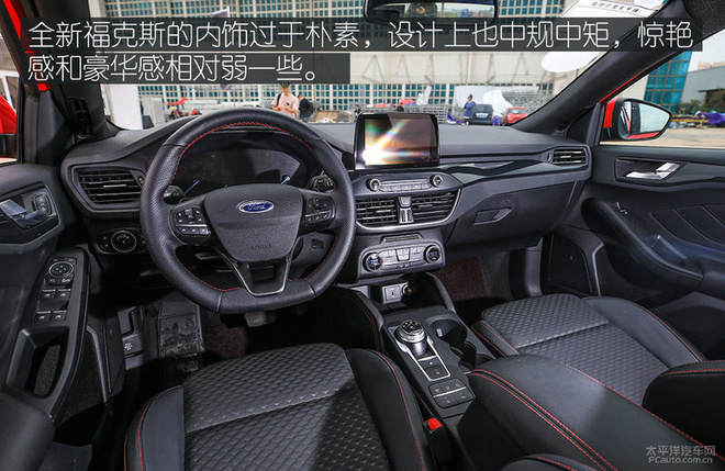 内饰没什么争议,福克斯的内饰不管看实车,还是在网上看图片,感觉都是一样的。总的来说就是没什么感觉,不惊艳,也不豪华,甚至像日系车那样用点小心思比如高反差的配色、包皮中控台,再比如什么钢琴漆,镀铬金属装饰,这些在福克斯上都没有。福克斯的内饰,总体来说就是“素”。