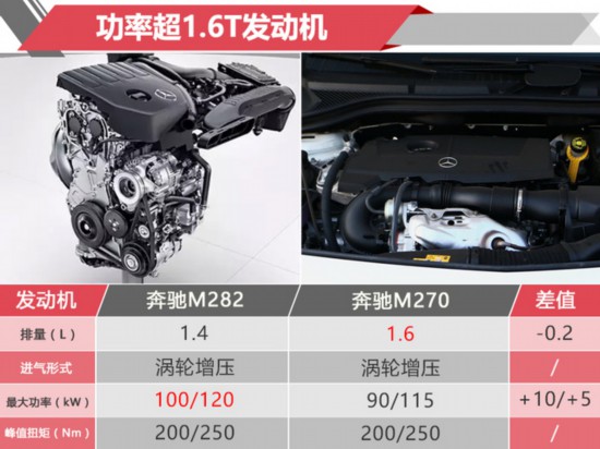 2.全新B级换搭M282系列1.4T发动机、取消2.0T发动机;