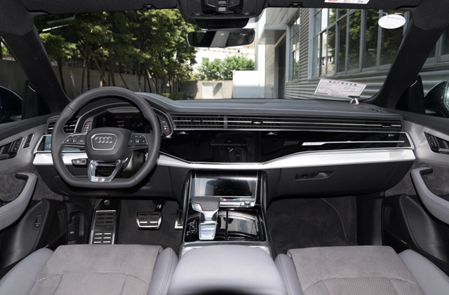 内饰方面,奥迪Q8采用了与新A8相同的多屏设计,包括中控位置上、下分别为10.1英寸、8.6英寸的触控屏。配置上,新车配备了自适应巡航、侧方车辆靠近警报、慢速倒车障碍物靠近警报、以及下车警示系统和车道变更警示系统。