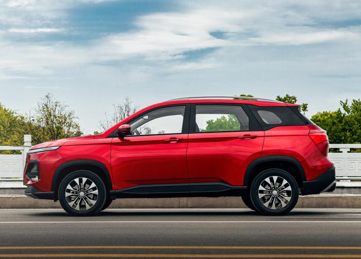 车身侧面,一条腰线从前灯眉一直贯穿至尾灯组,拉伸了车身视觉长度。同时,还使用了时下流行的悬浮式车顶、双色多辐轮圈、黑色轮眉饰板等设计。