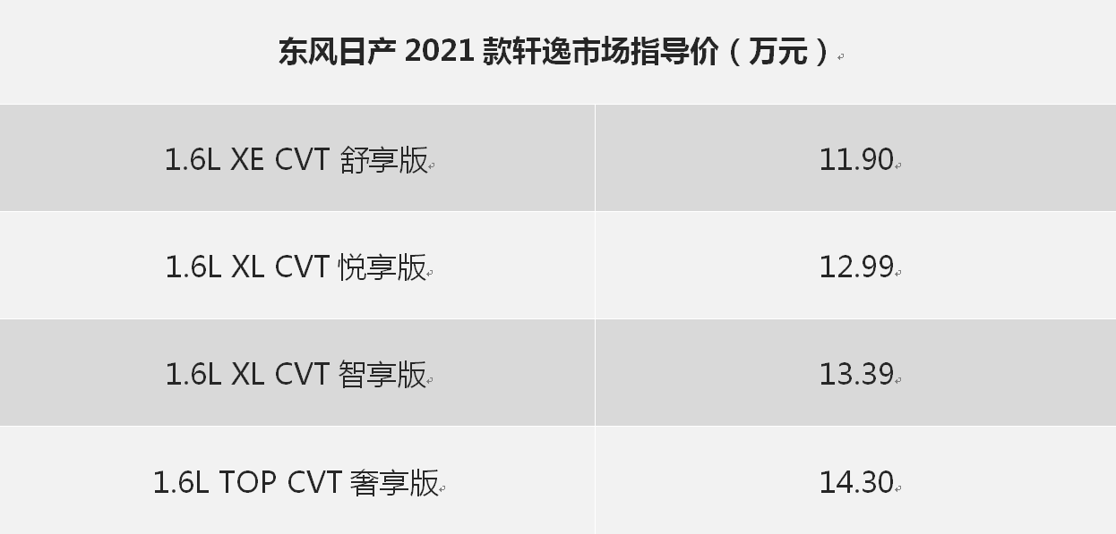 原标题:东风日产2021款轩逸正式上市 售价11.90万元-14.30万元