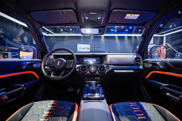 不止步于传统越野定义,坦克300采用智能豪华的沉浸式座舱,延续了刚柔并济、方圆有度的设计理念,营造出时尚前卫的豪华感知,与硬派的外观相呼应,带来强烈的视觉冲击。在硬件配置上,坦克300内饰配备了双12.3英寸液晶屏幕、座椅迎宾功能、双层隐私玻璃、顶级Infinity音响系统、“航空推进器”造型挡杆等豪华硬件配置,在豪华感知的营造上,再次彰显出不落窠臼的前卫理念,为用户带来尊享级礼遇,并采用先进的NVH噪音控制技术,拥有傲视同级的车内空间静谧性。