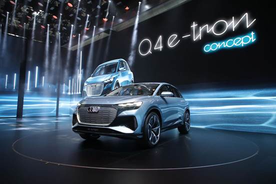 奥迪Q4 e-tron 概念车作为奥迪电动化家族的重要里程碑,在本次车展上完成了亚洲首秀。该车型是基于 MEB 平台开发的首款奥迪电动车型,在不久的将来,奥迪将携手其中国合作伙伴一汽集团实现奥迪Q4 etron 的本土化生产。