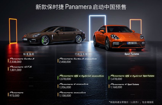 性能方面,新款Panamera所提供的动力范围进一步拓宽,动力等级分布也更加优化。旗舰车型由此前的Turbo升级为新款Panamera Turbo S,输出功率提升80 PS。新款Panamera GTS的输出功率则较旧款车型提升了20 PS。新加入的Panamera 4S E-Hybrid车型系统输出功率达560 PS。同时,全面优化的底盘系统令新款Panamera的驾驶动态与舒适性更为出色,不仅操控精准性和过弯稳定性显著提升,而且在长途驾驶中的舒适性优势也愈发明显。
