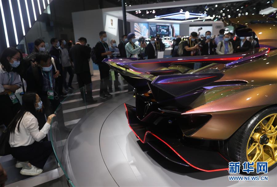 11月6日,观众在进博会汽车展区参观全碳纤维超级跑车Apollo IE。 全球首款全碳纤维超级跑车Apollo IE在第三届中国国际进口博览会汽车展区展出。据介绍,该款跑车采用独特设计的碳纤维底盘、单体座舱、副车架及防撞结构等,以达到兼顾安全性、抗扭刚性和轻量化要求。 新华社记者 丁汀 摄