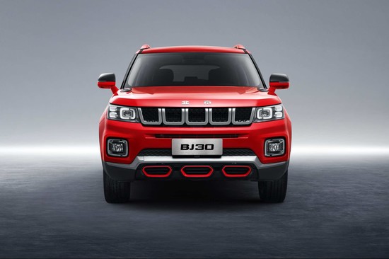 从此前曝光的官图上看,BJ30充分体现了家族化设计语言:专属“硬派风”的方正造型,家族标志性五孔进气格栅、圆角矩形车灯,以及独特的黑色轮眉、侧裙、前后保的保护套件点缀,让整体外观与BJ40神似却又独具个性,硬派但又不失精致特质。