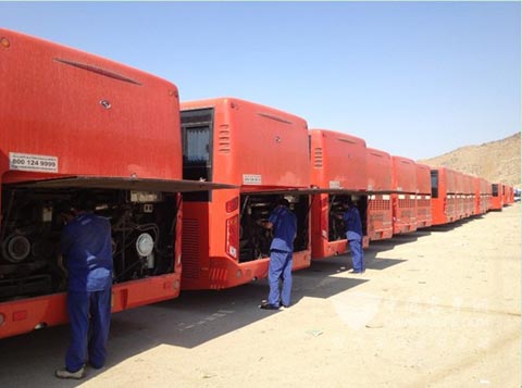 大金龙海外服务工程师在朝觐前夕对每一辆进行认真检查