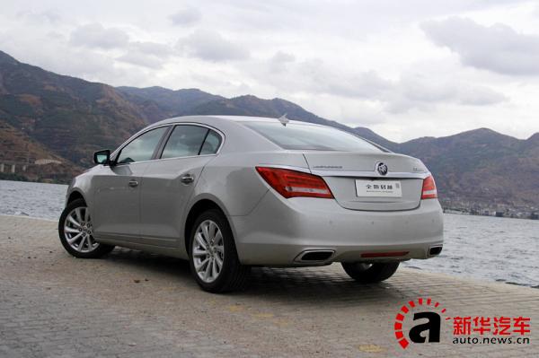别克全新君越的尾部设计颇有美式肌肉车的味道,非常敦实。但镀铬装饰和全新展翼型LED尾灯的采用,使得尾部看上去并不臃肿。