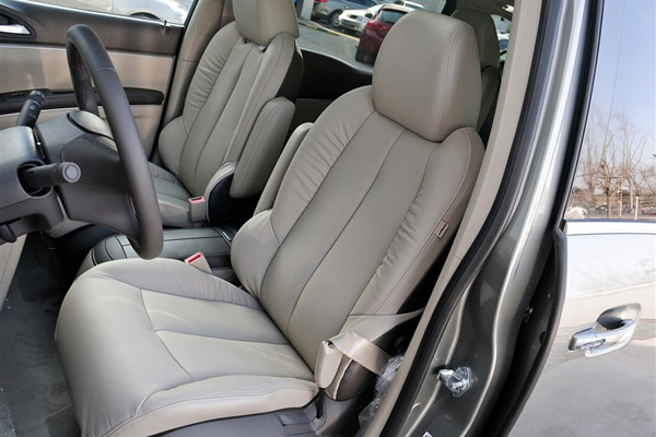 前排座椅使用了真皮打孔材质,坐垫和靠背都比较柔软,高配车型还具有电动调节、腰部支撑以及三级加热功能。前排空间显然不是这个级别MPV所担心的,虽然不如上代车型那么宽敞,但是绝对够用了。
