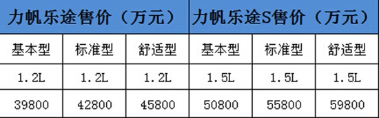 为紧跟市场需求,力帆推出了首款主打家用市场的七座车型——乐途。新车推出1.2L、1.5L两种排量共六款车型,并已经正式上市,官方指导售价为3.98万元至5.98万元。