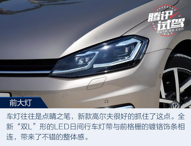 作为一款中期改款车型,新款高尔夫并没有大刀阔斧的改变,只是对外形进行了小幅升级,在保留经典元素的同时,融入了更多前瞻的技术配置和最新的家族设计语言。车头融入“X” 特征元素,上下平行的两条镀铬装饰条分别贯穿中网和下整体式进气格栅,前脸整体来看更具延展性。车灯往往是点睛之笔,新款高尔夫很好的抓住了这点。全新“双L”形的LED日间行车灯带与前格栅的镀铬饰条相连,带来了不错的整体感。内部光源由之前高配车型的氙气升级为LED大灯,科技含量顿时提高了不少。下进气格栅与雾灯区域经过重新设计后,使车头看上去更加动感、立体。