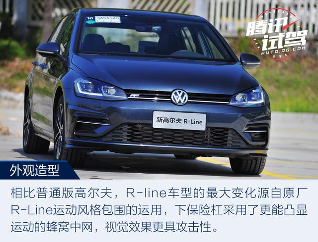 下面我们在去看看R-line版本的车型有哪些特别之处?相比普通版高尔夫,R-line车型的最大变化源自原厂R-Line运动风格包围的运用,下保险杠采用了更能凸显运动的蜂窝中网,视觉效果更具攻击性。中网加入了R-Line标识,表明了它与众不同的身份,风格向高尔夫R看齐。