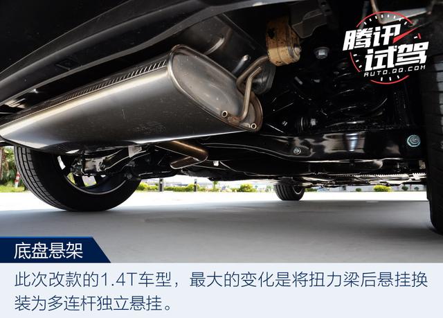 此次改款的1.4T车型,最大的变化是将扭力梁后悬挂换装为多连杆独立悬挂。实际驾驶起来后多连杆悬挂在经过减速带或小颠簸时,车身显得更加平稳,过弯时也能提供合适的支撑。但整体感觉和表现与扭力梁后悬挂差别不大,不过制造成本确实更高,也能给消费者的更多心理上的加分。不过目前得到的消息是1.4T车型全部装备独立后悬挂,而1.6L和1.2T车型到底装配的什么悬架,还要等到上市后才能有答案。