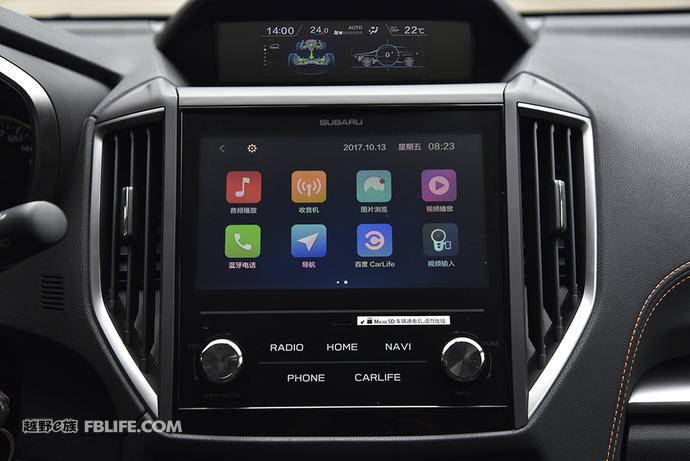 新XV拥有三块彩色显示屏,包括仪表盘中间的行车电脑屏,中控台顶端的车辆信息屏以及中控台上面积最大的多媒体屏。