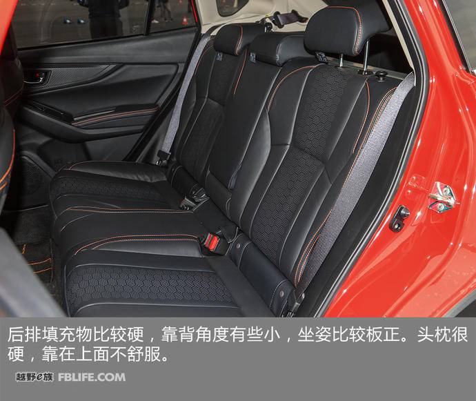 但位置偏高的座垫使得身高较高的乘客在头部空间上比较局促——不仅是正上方,侧方也很有压迫感。想靠在头枕上增加一些空间?且不说邦邦硬的头枕不舒服,椅背的角度也偏小,后排乘客坐得板正。另外,空调出风口依然没有出现在后排乘客的面前。总之,后排在XV里是得不到太多照顾的。